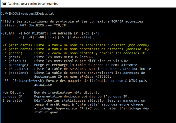 Nbstat est un utilitaire sur Windows qui affiche les statistiques du protocole NetBIOS sur TCP / IP, les tables de noms NetBIOS pour l’ordinateur local et les ordinateurs distants, et le cache de noms NetBIOS.