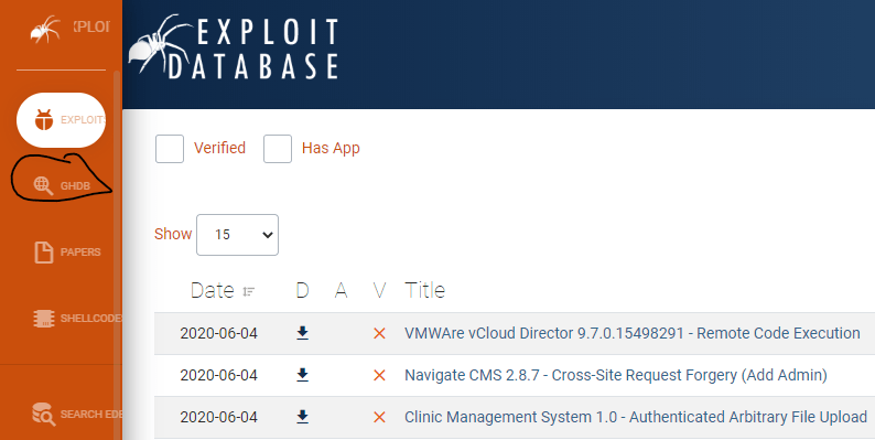 Allez sur exploit-db.com, cliquez sur GHDB :