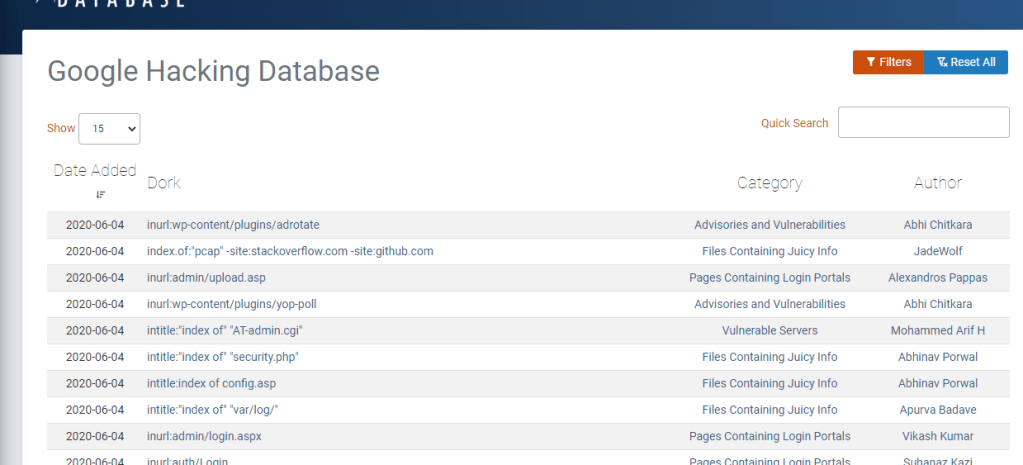 Les pirates utilisent le moteur de recherche Google pour trouver des systèmes vulnérables (que ce soit une base de données, un site Web, des caméras de sécurité ou tout gadget IOT) à l’aide de quelques requêtes de recherche spéciales.