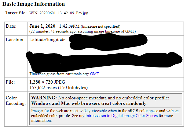Il est possible de collecter énormément d’informations sur un fichier en allant sur le lien http://exif.regex.info/exif.cgi.