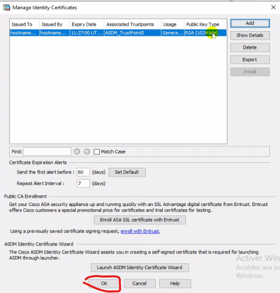 - Notez bien que c’est la clé RSA que nous avions créé sur l’ASA qu’il va ajouter :