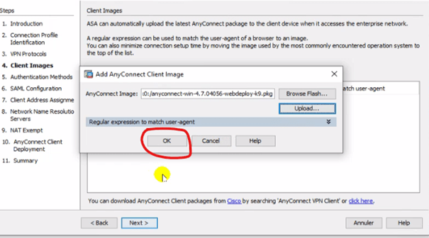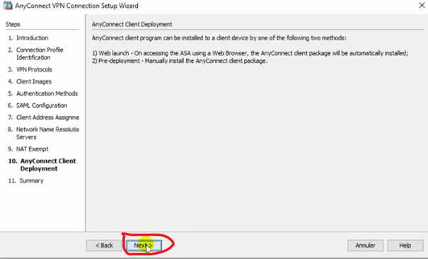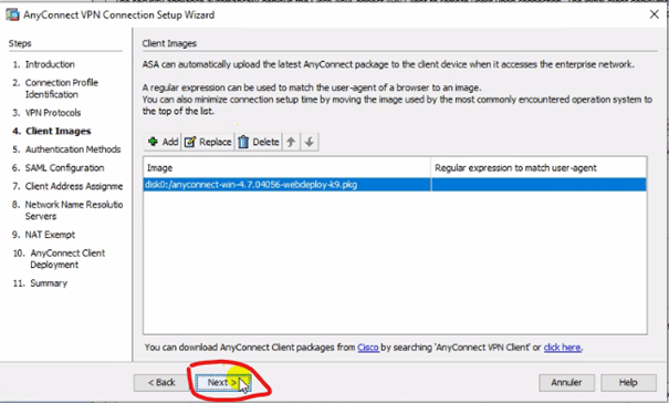 - N.B : si AnyConnect n’est disponible ni sur l’ASA ni sur le client, téléchargez le site de Cisco.