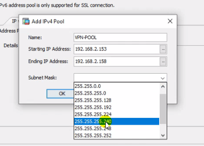 - Vous donnez le nom du pool dans Name, le début du pool dans Starting IP Address, la fin du pool dans Ending IP Address et enfin le masque de sous-réseau dans Subnet Mask, puis cliquez sur Ok :