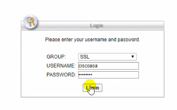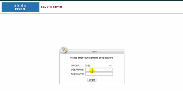 - Maintenant, choisissez le VPN LOCAL (SSL) dans GROUP et entrez le username ciscoasa et le password correspondant dans USERNAME et PASSWORD. Cliquez sur Login :