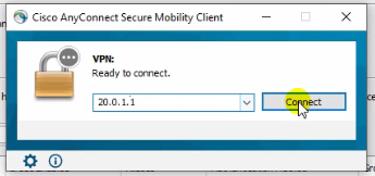 - Une fois installer, vous pouvez l’ouvrir et entrez l’adresse de l’interface outside de l’ASA puis cliquez sur Connect :
