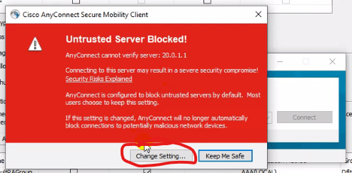 - A la première connexion, il peut arriver qu’il affiche la fenêtre suivante. Cliquez sur Change Setting pour régler le problème :